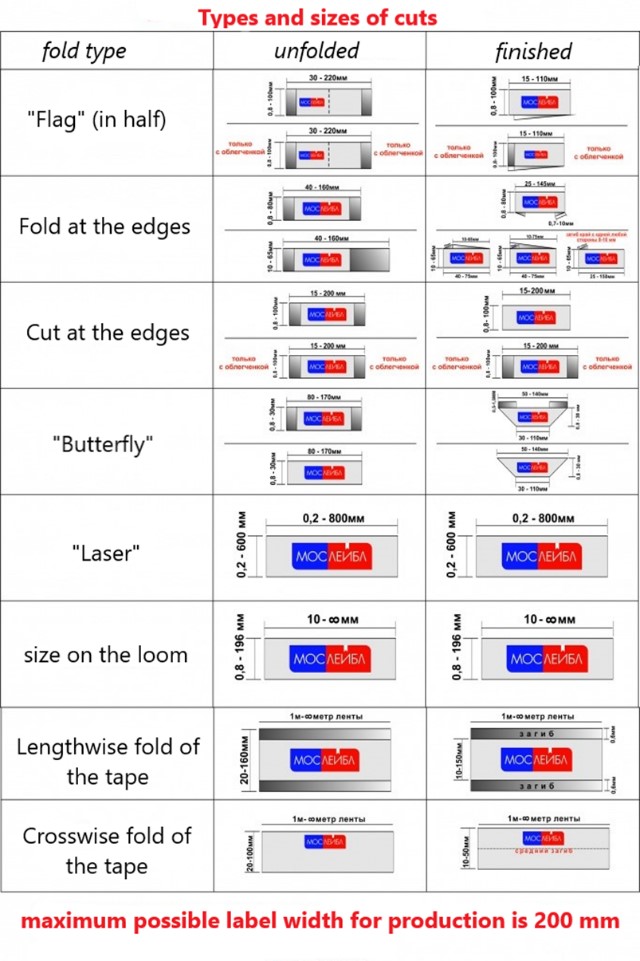 - type of product (jacquard labels; printed labels on satin, nylon, polyester, cotton, silicone; cardboard labels, leatherette and PVC labels, branded seals, size labels),